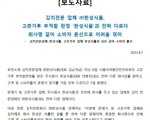 한성식품 소식