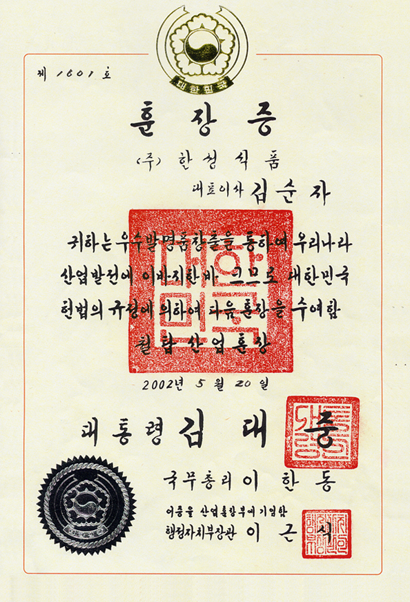 철탑산업훈장 수훈 (2002년 5월 20일)