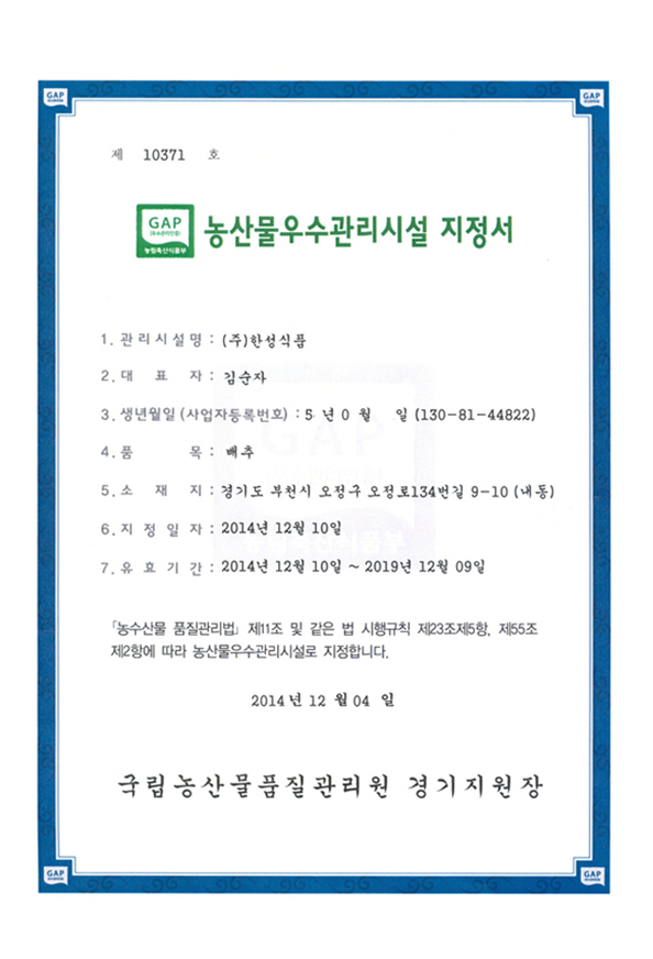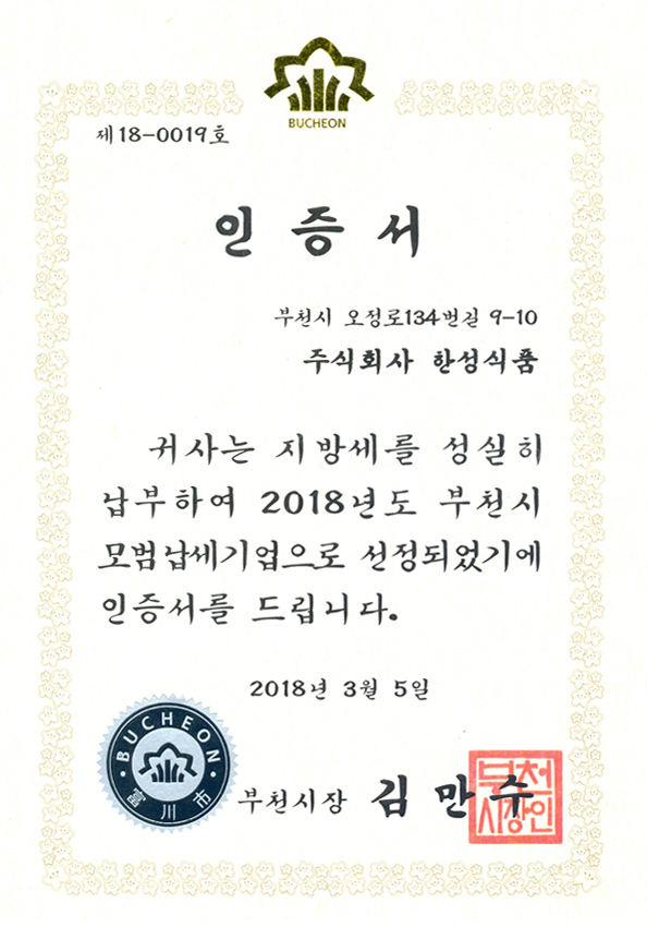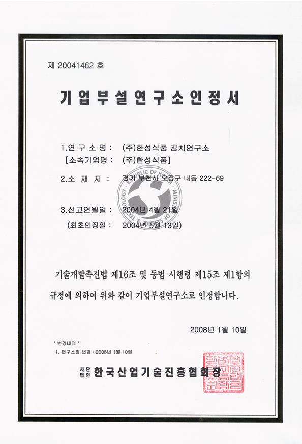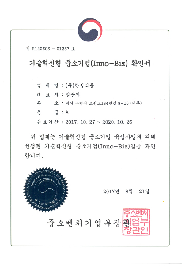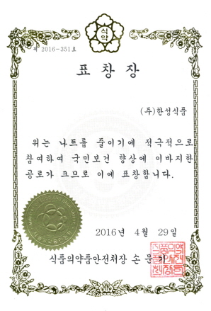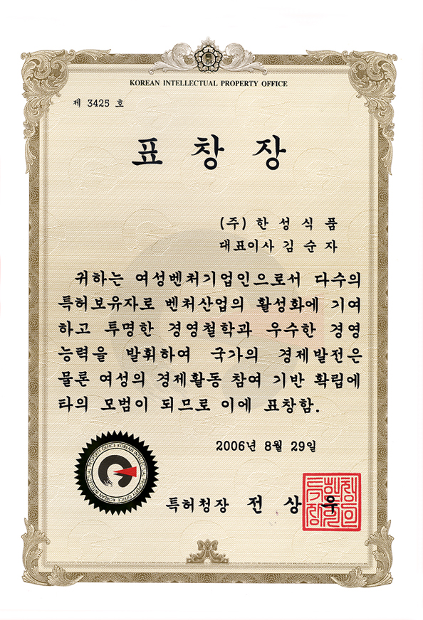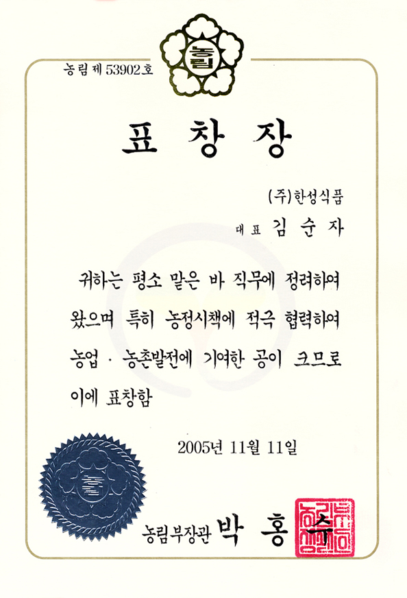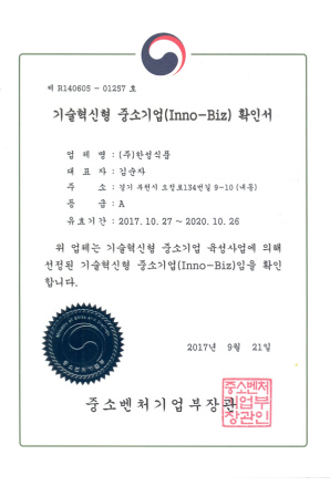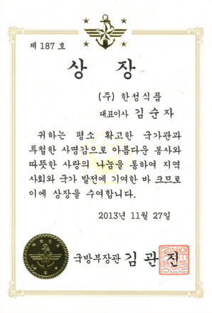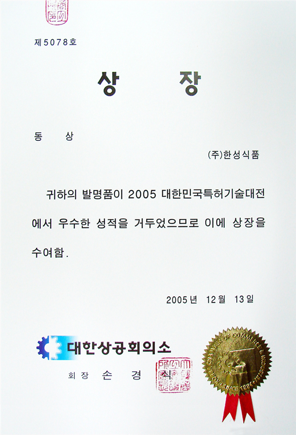 한성식품은 끊임없이 노력하고 연구하고 있습니다. HACCP과 ISO 22000, 할랄 인증 등 각종 품질 인증과 시상내역들을 소개합니다.